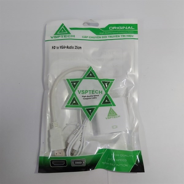 Cáp chuyển HDMI to VGA VSP là cáp chuyển đổi HDMI to VGA hiệu suất cao. Với chuẩn HDMI 1.4b, Cáp chuyển HDMI to VGA VSP hỗ trợ độ phân giải lên đến 1080p.