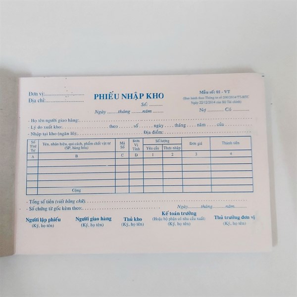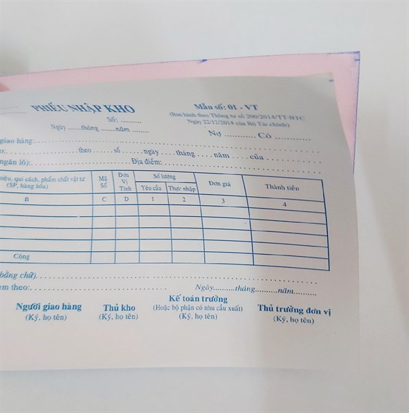 - -Là sản phẩm được in trên loại giấy ford và giấy carbon 2 liên khổ 13x19cm, ban hành theo QĐ số 15/2006/QĐ-BTC ngày 20/3/2006 của Bộ trưởng Bộ Tài Chính, giúp ghi lưu đầy đủ thông tin trong công việc nhập hàng hóa ra khỏi kho.