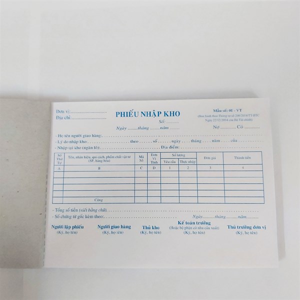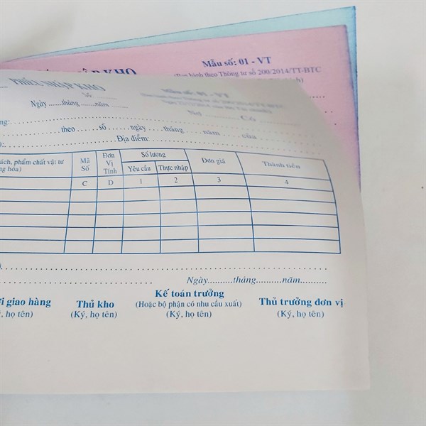 - -Là sản phẩm được in trên loại giấy ford và giấy carbon 3 liên khổ 13x19cm, ban hành theo QĐ số 15/2006/QĐ-BTC ngày 20/3/2006 của Bộ trưởng Bộ Tài Chính, giúp ghi lưu đầy đủ thông tin trong công việc nhập hàng hóa ra khỏi kho.
