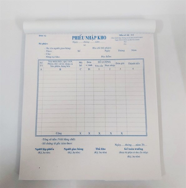 - -Là sản phẩm được in trên loại giấy ford và giấy carbon 3 liên, ban hành theo QĐ số 15/2006/QĐ-BTC ngày 20/3/2006 của Bộ trưởng Bộ Tài Chính, giúp ghi lưu đầy đủ thông tin trong công việc nhập hàng hóa ra khỏi kho.