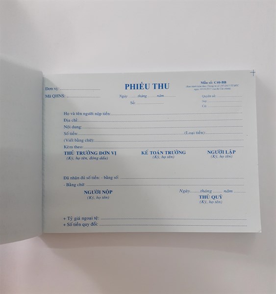 Phiếu thu 2L 13x19cm (50 bộ=100 tờ)