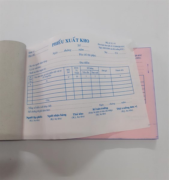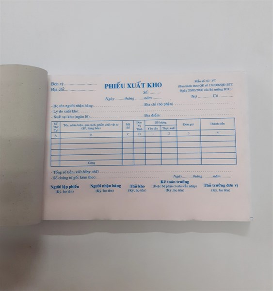 -Là sản phẩm được in trên loại giấy ford và giấy carbon 2 liên khổ 13x19cm, ban hành theo QĐ số 15/2006/QĐ-BTC ngày 20/3/2006 của Bộ trưởng Bộ Tài Chính, giúp ghi lưu đầy đủ thông tin trong công việc nhập hàng hóa ra khỏi kho.
