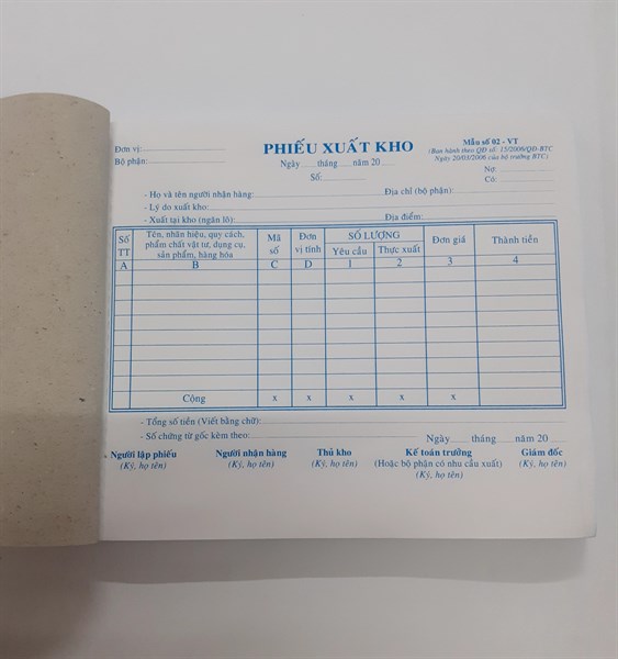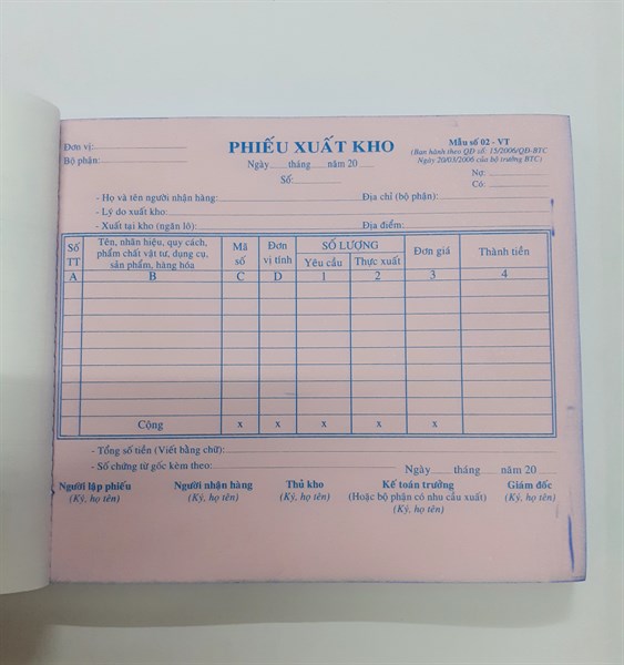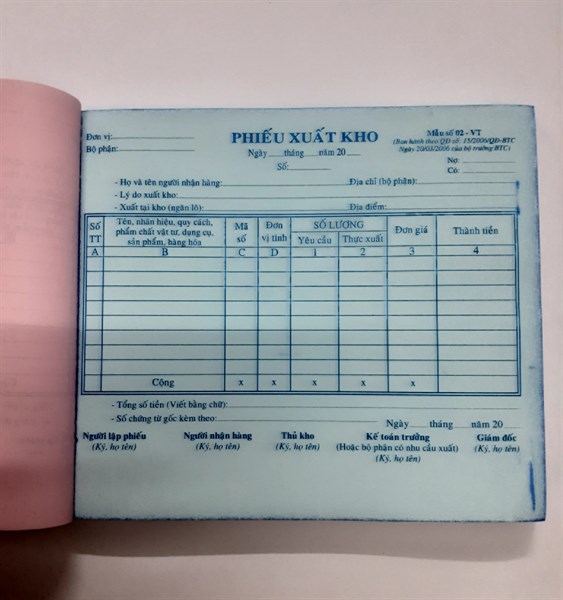Đặc điểm: là sản phẩm được in trên loại giấy ford và giấy carbon 3 liên khổ 16x20cm, ban hành theo QĐ số 15/2006/QĐ-BTC ngày 20/3/2006 của Bộ trưởng Bộ Tài Chính.
