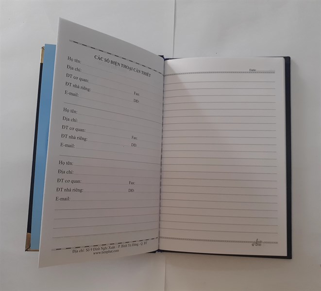 - -Là sản phẩm sổ tập dạng sổ bìa da cứng màu đen với các góc bo tròn viền vàng trau chuốt, giấy kẻ ngang dày 108 trang. Sản phẩm thích hợp cho việc ghi chú nội dung quan trọng tại các cuộc họp tại văn phòng công ty.