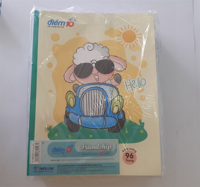 - Tập học sinh Thiên Long - Điểm 10 TP-NB039 (96 trang - 4 ôly vuông 2x2 mm) bìa cán vân, thiết kế hoàn toàn mới, màu sắc và bố cục ấn tượng, rất thích hợp với học sinh tiểu học.
